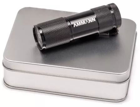 - Na obudowie latarki zostało nadrukowane logo marki Ammann, wiodącego na świecie producenta maszyn i sprzętu budowlanego.