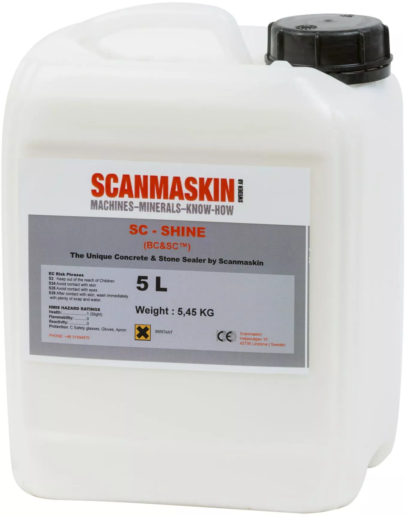 Scanmaskin SC-Shine ™ zapewnia powłokę ochronną, wysoki połysk i odporność posadzki. Sprawia, że podłoga jest odporna na plamy i redukuje konserwację powierzchni bez dodatkowych kosztów. Zapewnia również zabezpieczenie powierzchni przed pyleniem. To kosmetyczne wykończenie, które może zastąpić wosk i uszczelniacz akrylowy do gruntowania. Shine ™ ma podobny wygląd, jak wykończenie woskowe, ale w porównaniu z tym wymaga bardzo niewiele konserwacji.