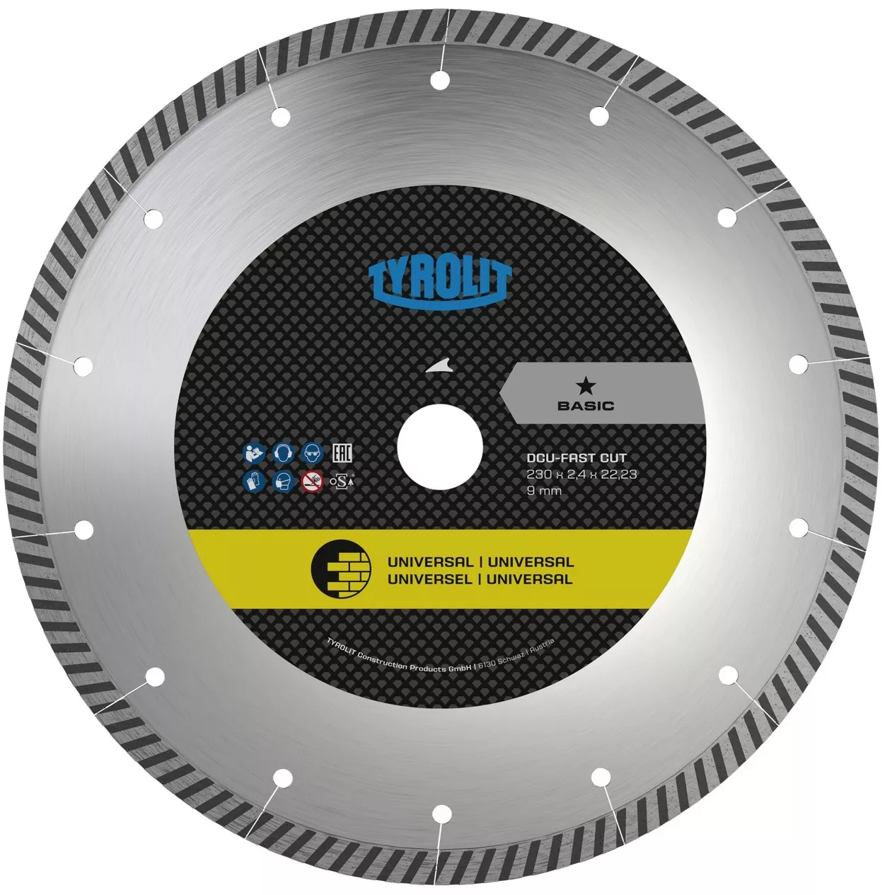 Tarcze do cięcia na sucho z serii DCU-FC marki Tyrolit są stosowane do materiałów ogólnobudowlanych takich jak beton, cegła z gliny, kamień naturalny itp. Do tarcz o otworze 105 mm dostarczany jest pierścień redukcyjny 20-16 mm.