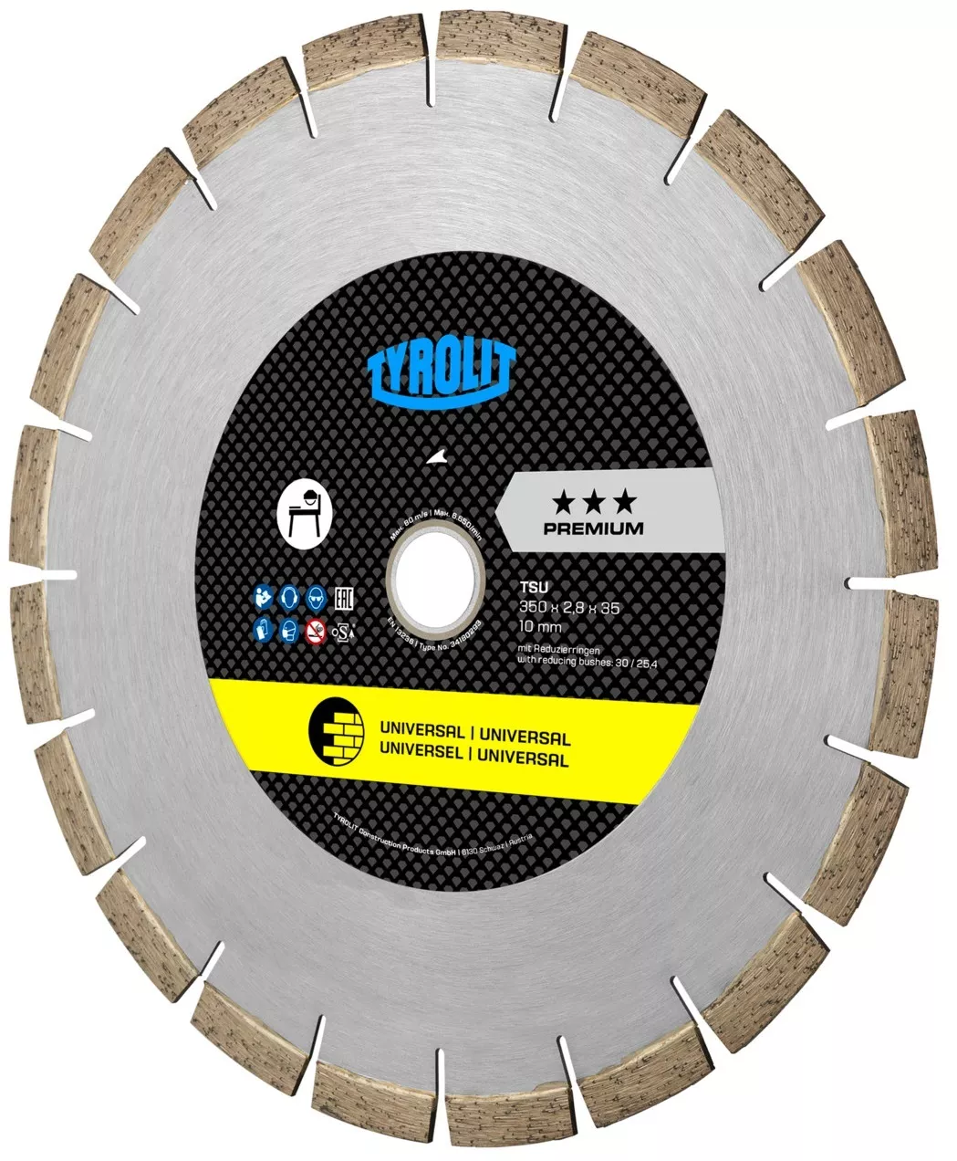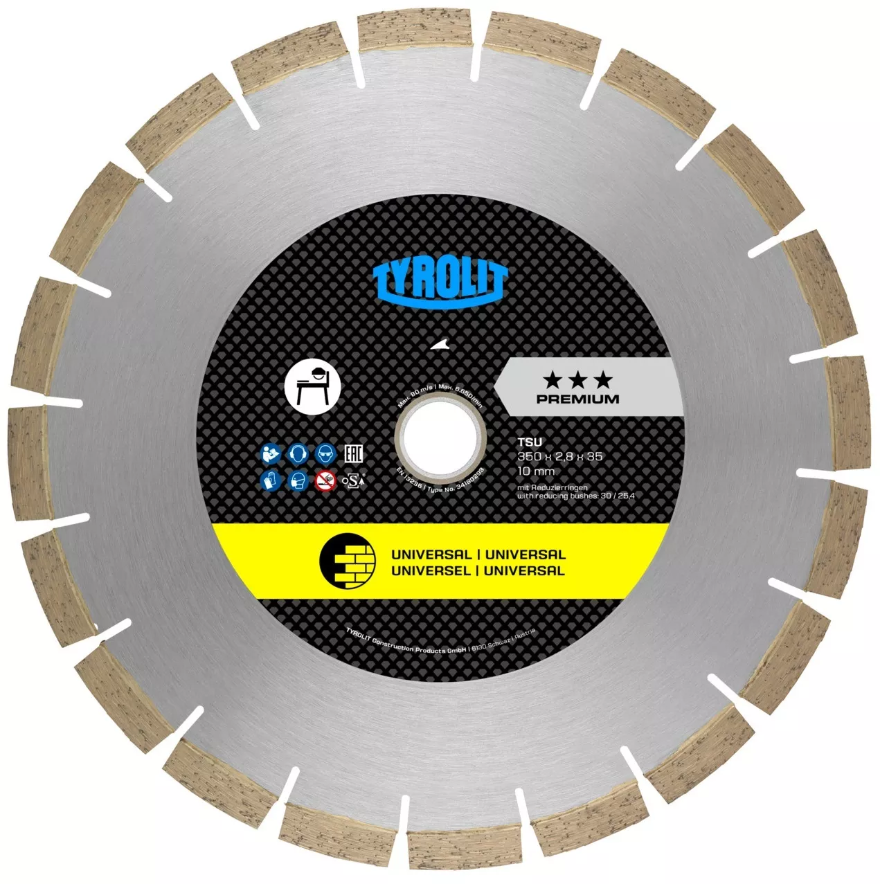 Tarcze do przecinarek stolikowych Tyrolit z seri TSU są używane do materiałów takich jak: beton komórkowy, cegła wapienno-piaskowa, kamień ścierny, cegła z gliny itp. Do tarcz o otworze do 550 mm dostarczany jest pierścień redukcyjny 35-30 mm i 30-25,4 mm. Od średnicy 625 mm dostarczany jest pierścień redukcyjny 60–55 mm.