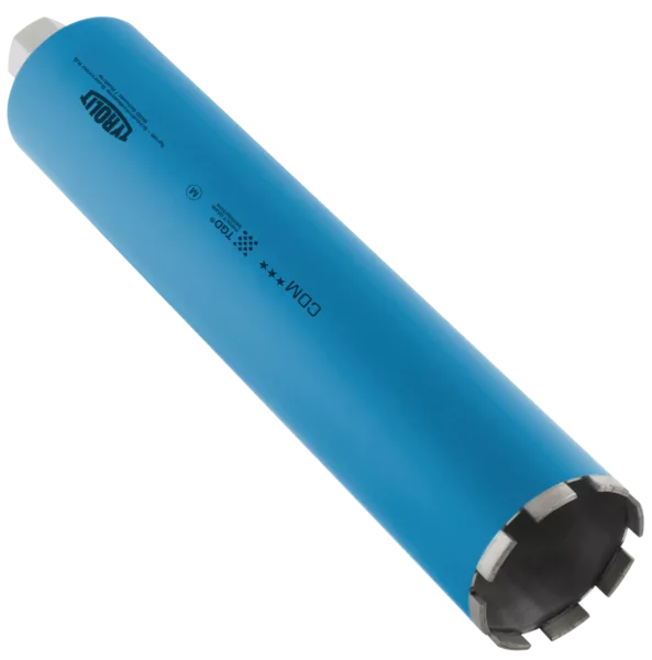 Wiertła koronowe do wiercenia na mokro z serii CDM w technologi TGD® to narzędzia o wysokiej jakości, spełniające najwyższe wymagania i charakteryzujące się najwyższą ekonomicznością. Moc wiertnicy ponad 3 kW. Stosowane do średnio twardych oraz twardych kruszyw betonowych. Znakomita stała wydajność, uniwersalne zastosowanie i łatwe usuwanie rdzenia. Segmentowane wiertła od średnicy 82 mm z technologia TGD® posiadają nową wysokość segmentu 11,3 mm. Spawane laserowo segmenty do średnicy 250 mm zapewniają najwyższe bezpieczeństwo. Narzędzia diamentowe Tyrolit produkowane z zastosowaniem technologii TGD® zapewniają wyjątkowo ekonomiczną i efektywną pracę dzięki inteligentnemu rozkładowi ziaren, tzw. TYROLIT GRAIN DISTRIBUTION.
