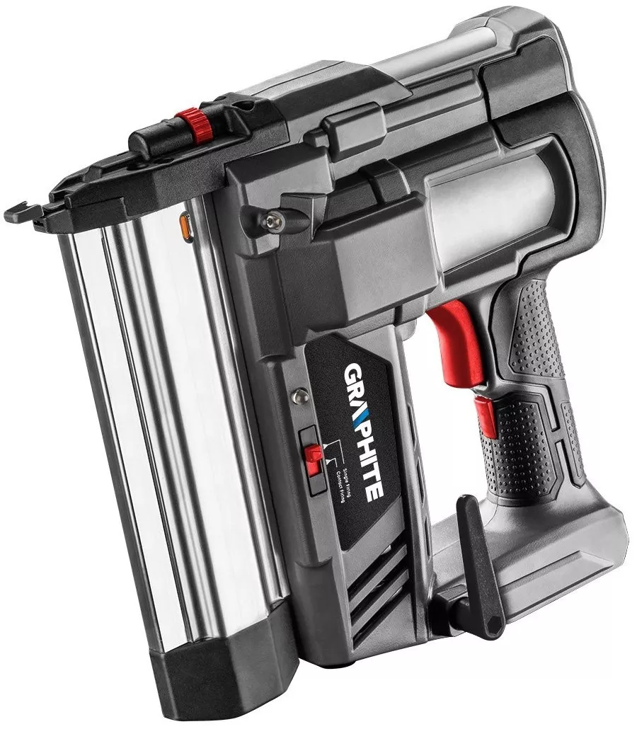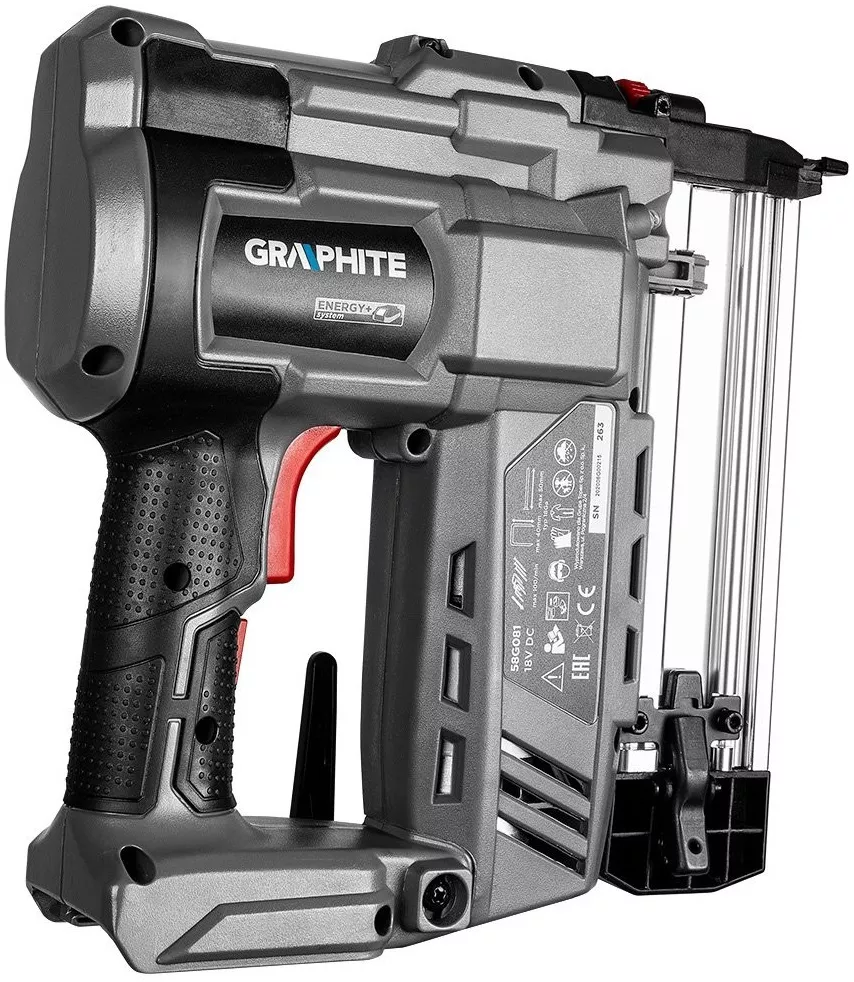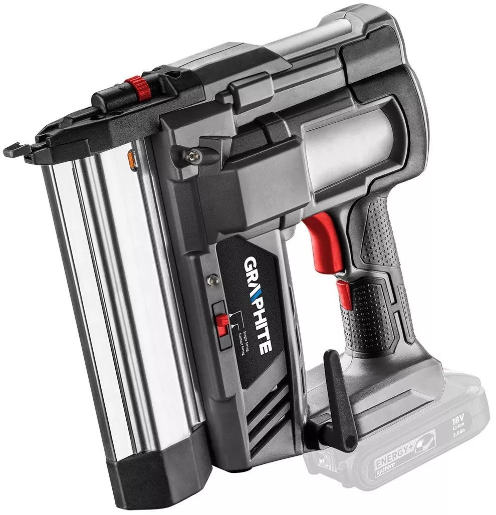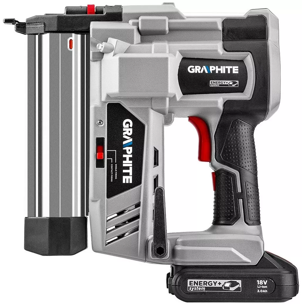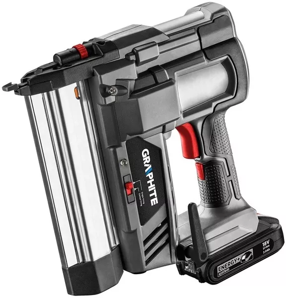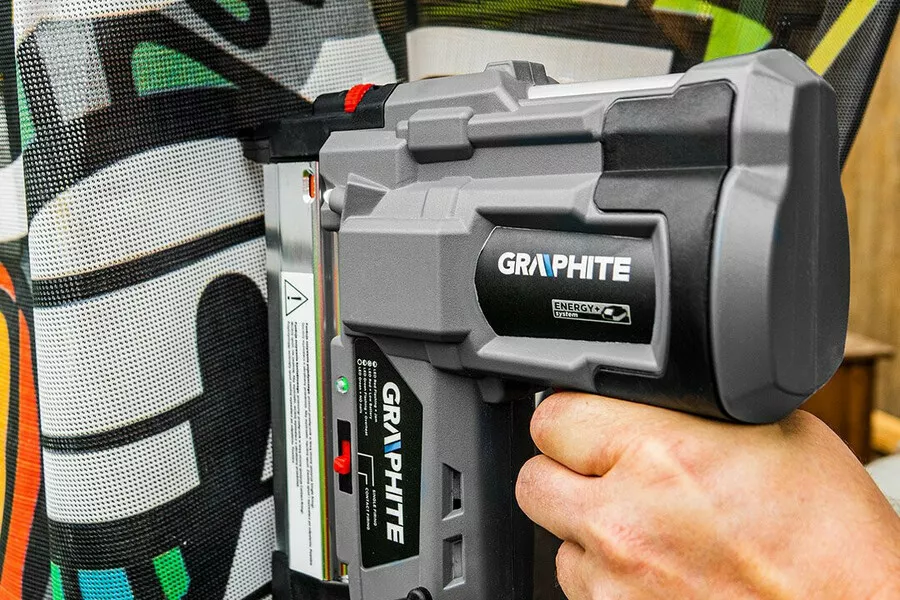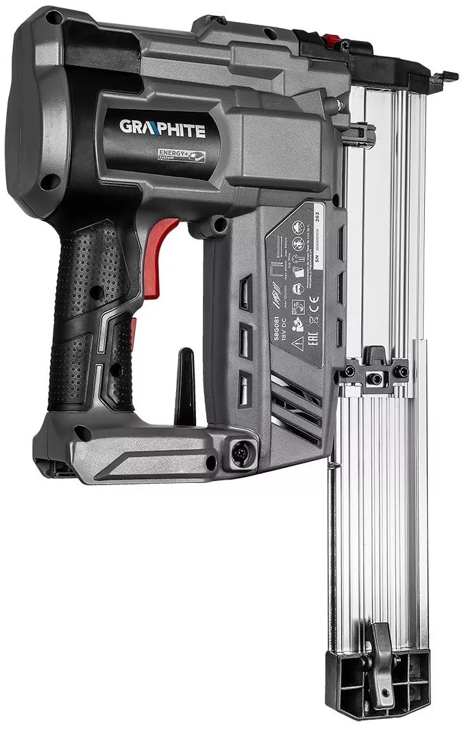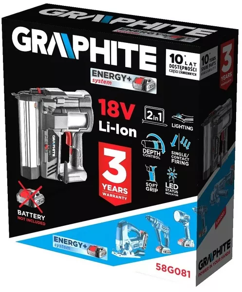 Bezprzewodowy zszywacz 2w1 Energy+ 58G081 marki Graphite posiada zarówno funkcję zszywacza jak i gwoździarki. Jest to wielozadaniowe, wytrzymałe oraz zoptymalizowane pod kątem wygody użytkowania narzędzie. Osiąga ono do 100 operacji na minutę (średnia liczba to 60 na minutę). Współpracuje z zszywkami oraz gwoździami w typie GA 18 o długości 40/50 mm.