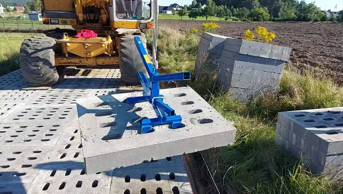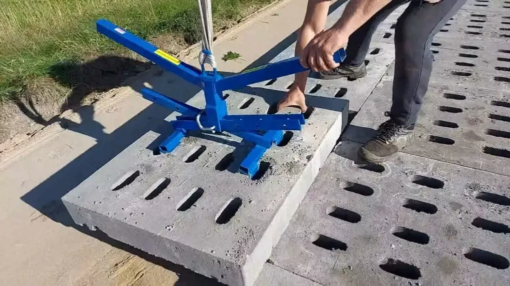 Przenoszeniem ręcznym mogą zajmować się dwie lub cztery osoby, a specjalny uchwyt umożliwia podwieszenie chwytaka pod koparkę lub inny sprzęt do tego przystosowany. Na uwagę zasługują również wyprofilowane uchwyty, które pozwalają na chwytanie płyt z zewnątrz lub z wykorzystaniem wewnętrznych otworów.