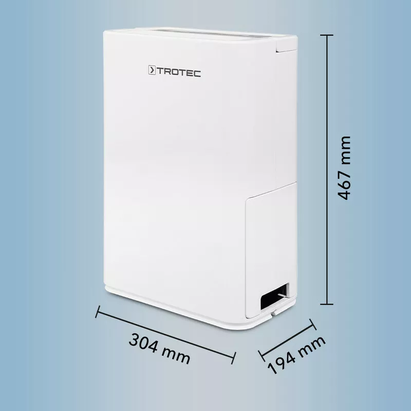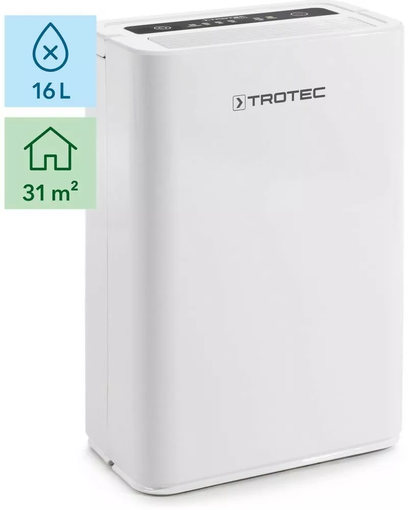 Wentylator podłogowy Trotec TVM 24 DOsuszacz powietrza TTK 52 E marki Trotec to wysoce efektywne urządzenie, które łączy funkcjonalność z eleganckim designem. Jego wydajność usunięcia wilgoci, nawet do 16 litrów dziennie, sprawia, że jest idealny do szybkiego i skutecznego osuszania pomieszczeń mieszkalnych lub biurowych. Kompaktowy rozmiar i nowoczesny wygląd osuszacza TTK 52 E pozwalają na łatwe zintegrowanie go z każdym wnętrzem, zachowując przy tym maksymalną funkcjonalność. Urządzenie jest szczególnie przydatne w pomieszczeniach z podwyższoną wilgotnością, gdzie pomaga w ochronie przed wilgocią, pleśnią i roztoczami. Intuicyjne sterowanie elektroniczne, timer i higrostat automatyczny zapewniają użytkownikowi pełną kontrolę nad klimatem wewnętrznym, oferując jednocześnie komfort i oszczędność energii.