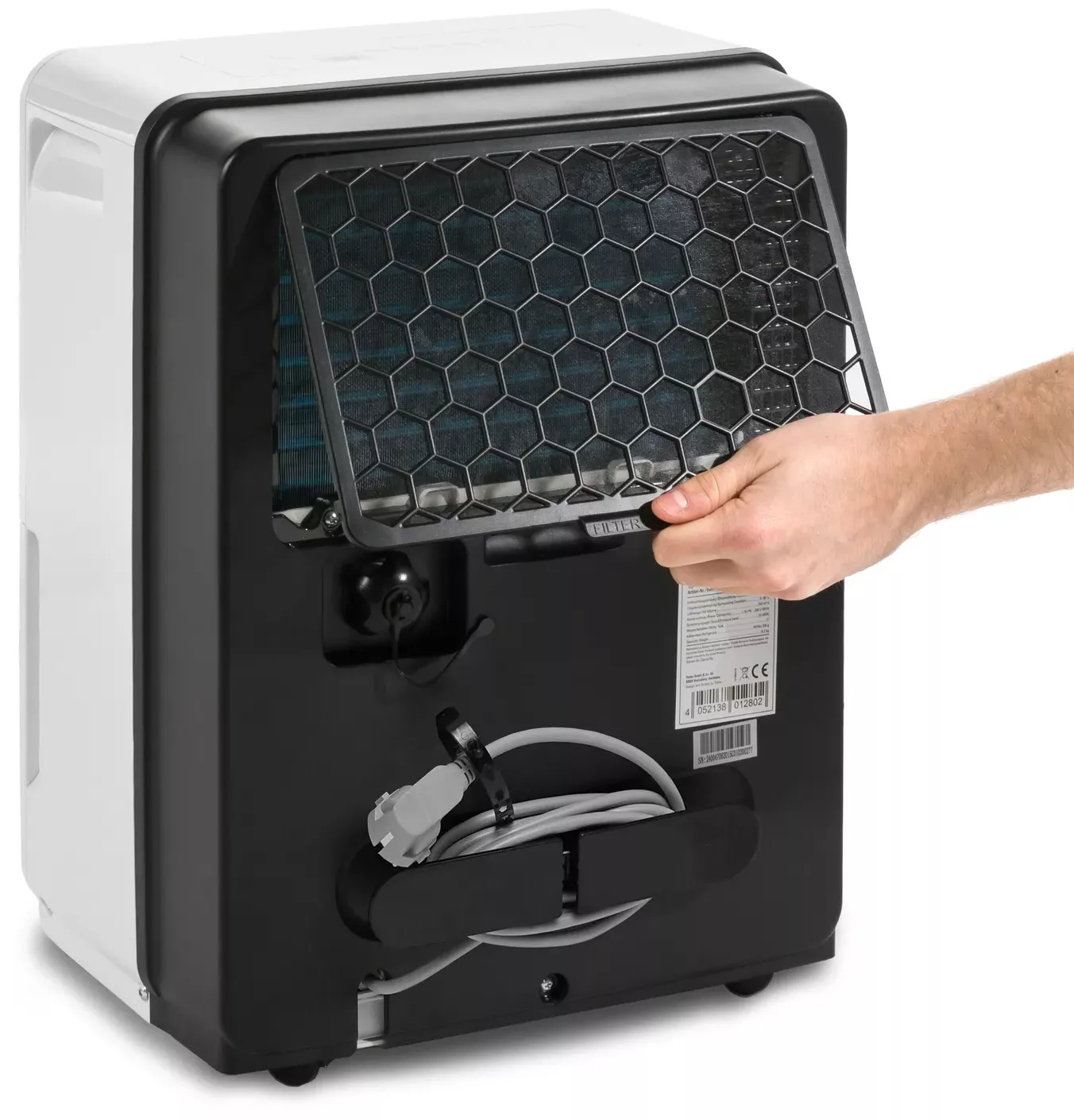 Urządzenie posiada zintegrowany system higrostatyczny, który automatycznie utrzymuje wilgotność powietrza na wybranym poziomie. Zakres regulacji wynosi od 35 % do 85 % wilgotności, co czyni je odpowiednim do różnych warunków klimatycznych. Dodatkowo, w trybie ciągłym urządzenie samoczynnie dostosowuje swoją wydajność, włączając się i wyłączając w zależności od przekroczenia zadanego poziomu wilgotności.