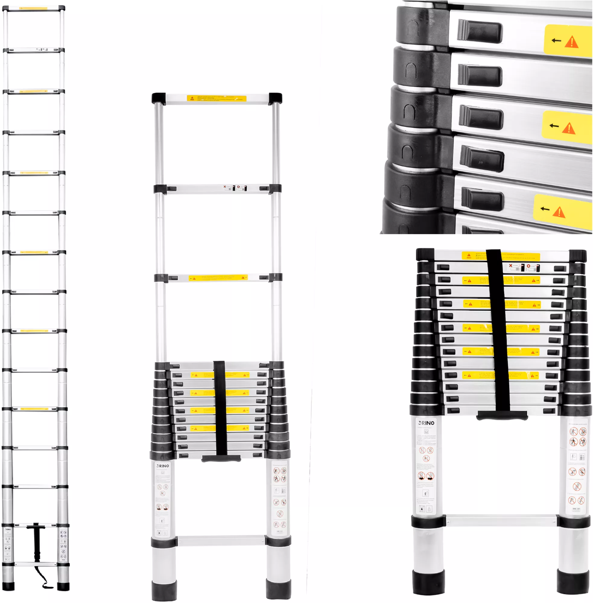 Drabina teleskopowa LAD44ST marki Rino to połączenie nowoczesności i funkcjonalności, idealna dla użytkowników domowych i profesjonalistów. Dzięki długości 4,4 m i solidnym 15 stopniom o wysokości 30 cm, doskonale sprawdzi się przy pracach takich jak montaż oświetlenia, przycinanie drzew czy prace konserwacyjne. Wykonana z lekkiego i trwałego aluminium, jest odporna na korozję i uszkodzenia mechaniczne. Kompaktowa konstrukcja (93 cm po złożeniu) ułatwia transport i przechowywanie, a optymalna waga 11,8 kg zapewnia łatwość użytkowania. Przekonaj się sam, jak wiele może zmienić jedno urządzenie i dołącz do grona użytkowników, którzy przeszli na wyższy poziom z RINO!