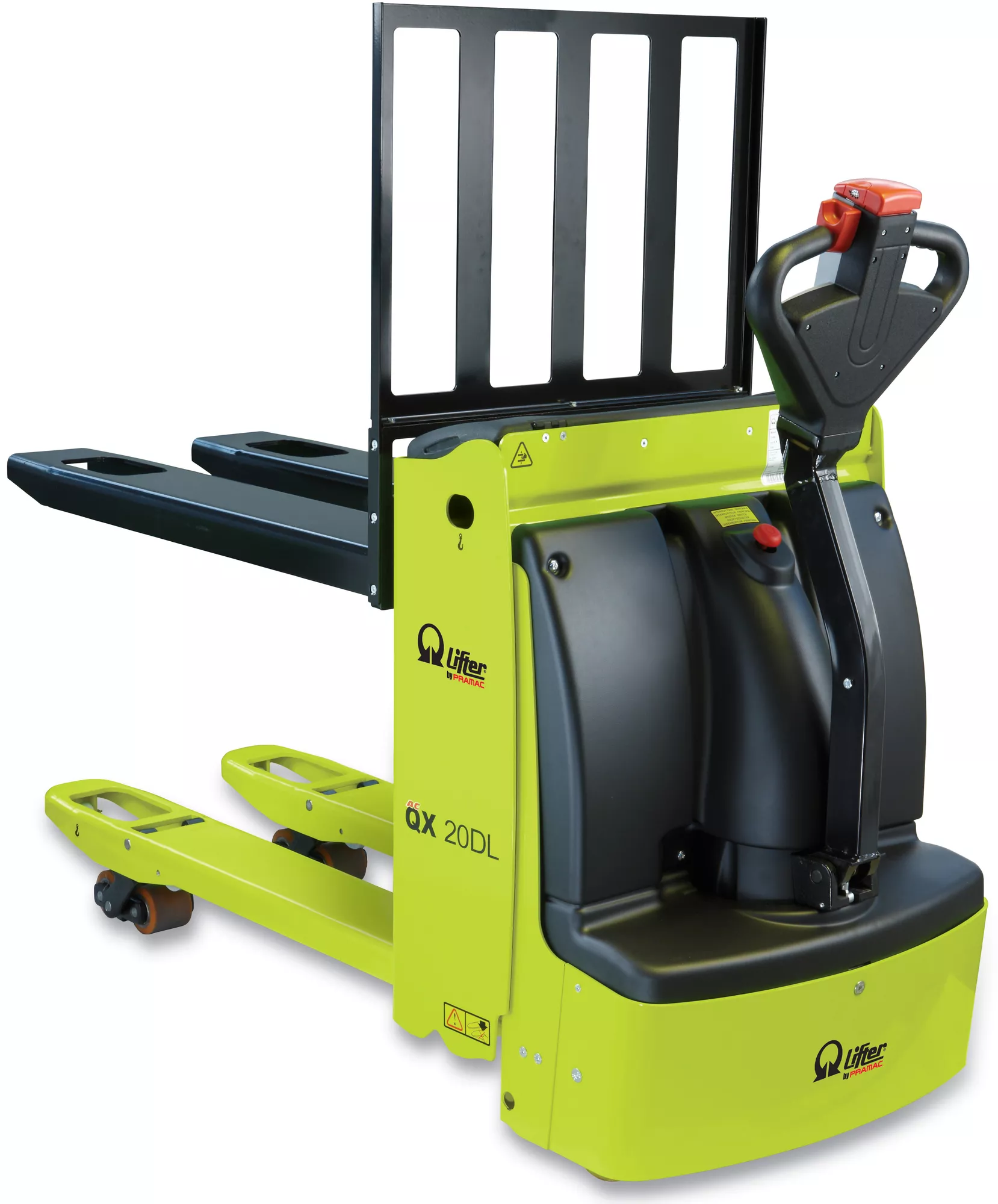 - QX DL. Ta wersja wózka QX20 oprócz możliwości standardowego przewożenia palet o ciężarze do 2000kg, dodatkowo posiada możliwość podniesienia górnych wideł na wysokość 800mm, tworząc w ten sposób praktyczną powierzchnię roboczą ułatwiającą przeniesienie ładunku z palety na regał. Zastosowanie oparcia karetki gwarantuje pełne bezpieczeństwo. Widły górne i dolne mogą być podnoszone niezależnie za pomocą przycisków na dyszlu sterującym.