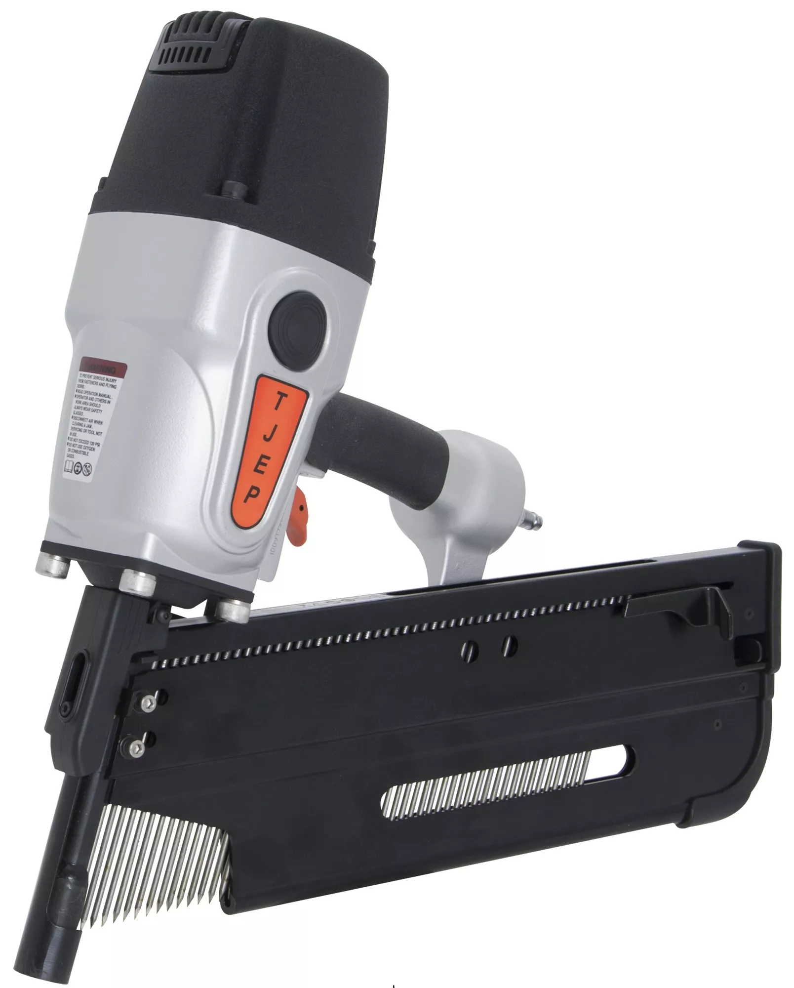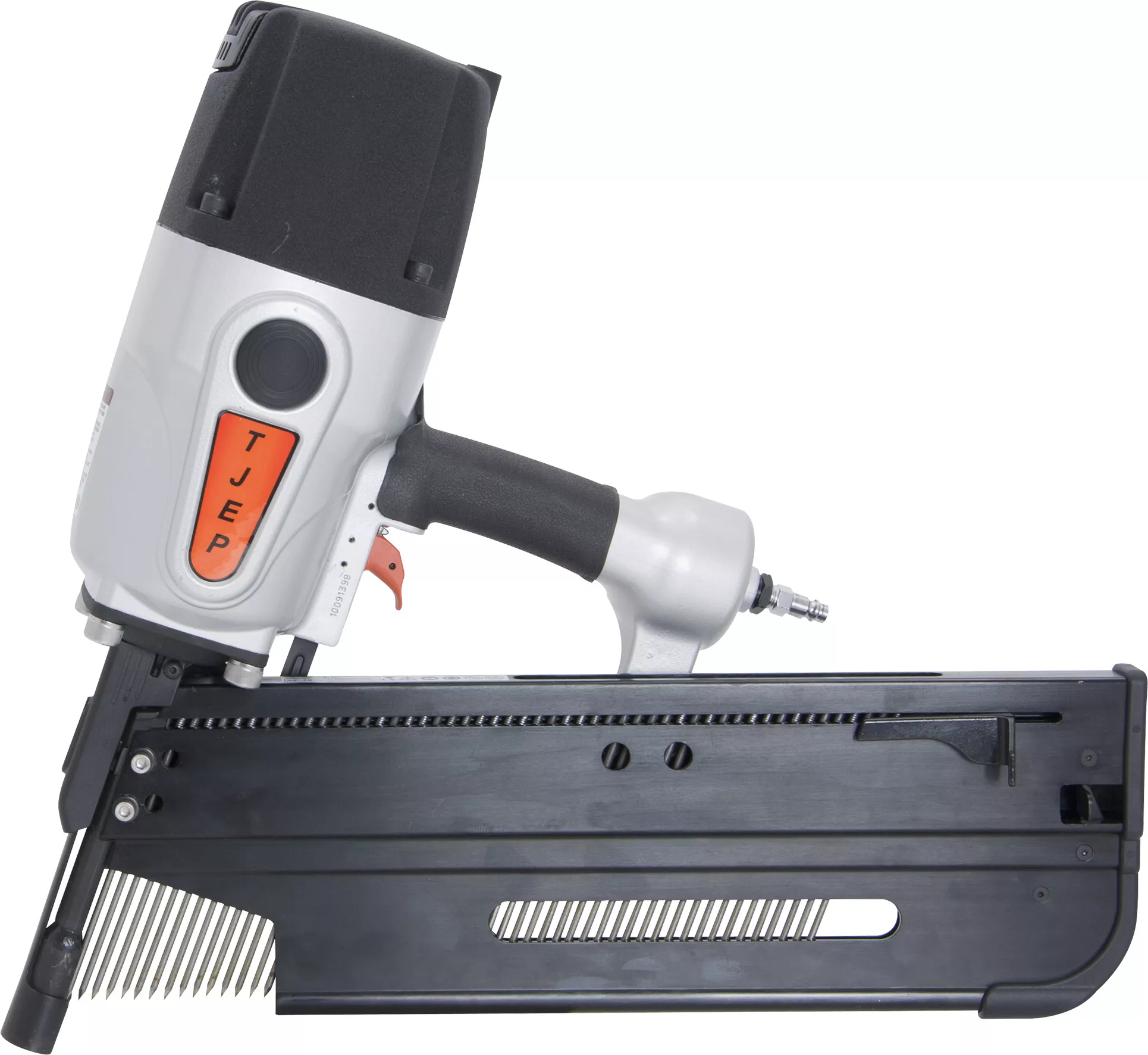 Gwoździarka pneumatyczna szynowa model FH-160 marki Tjep to wydajne narzędzie zaprojektowane z myślą o ciężkich pracach, takich jak łatowanie, montaż krokwi, czy deskowanie. Z maksymalną długością gwoździ wynoszącą 160 mm i szerokim zakresem średnicy od 3.8 do 5.0 mm, to narzędzie sprawdzi się w wielu zastosowaniach budowlanych. Dzięki wydajnemu zużyciu powietrza na cykl wynoszącemu 5.4 litra, gwoździarka zapewnia dużą moc wbicia, co czyni ją idealnym rozwiązaniem do trudnych warunków roboczych.