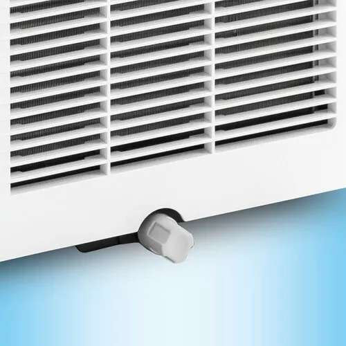 - W trybie osuszania, kondensat wytwarzany w urządzeniu jest ponownie wykorzystywany do chłodzenia, co eliminuje problem odprowadzania skroplin. W przypadku szczególnie wysokiej wilgotności powietrza lub pracy w trybie ciągłym, kondensat może gromadzić się w zbiorniku (konieczność ręcznego opróżniania zbiornika wyeliminować można poprzez podłączenie węża odpływowego - dostępnego dodatkowo płatnie).