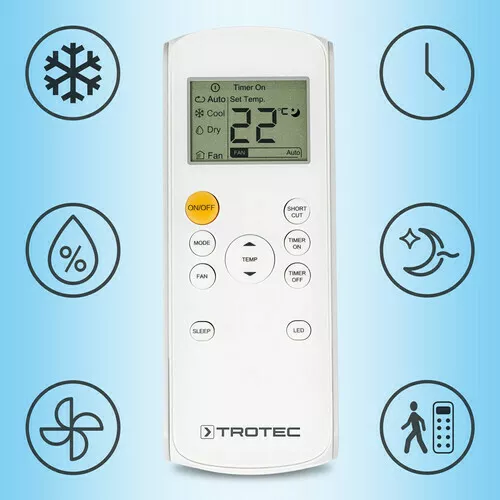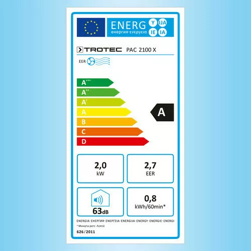 Klimatyzator przenośny PAC 2100 X marki Trotec gwarantuje szybkie chłodzenie nawet w czasach największych upałów. Posiada on trzy funkcje - oprócz funkcji automatycznego chłodzenia, także funkcję osuszania i wentylacji. Moc wynosząca 2 kW oraz klasa wydajności energetycznej A są gwarancją idealnych parametrów w pomieszczeniach mieszkalnych i biurowych o kubaturze do 65 m³.