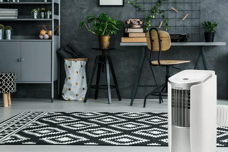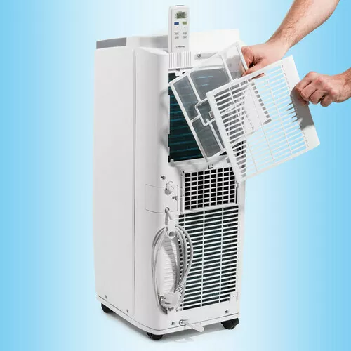 - Zintegrowane uchwyty pozwalają na szybkie przeniesienie klimatyzatora do innego pomieszczenia,