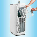 - Instalacja i przygotowanie tego klimatyzatora wymaga jedynie kilku czynności. Wstępnie zamontowany filtr powietrza oczyszcza powietrze w pomieszczeniu z włókien, kurzu oraz sierści. Jest także przystosowany do łatwego wyjmowania i czyszczenia.