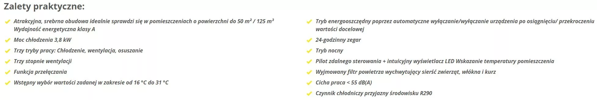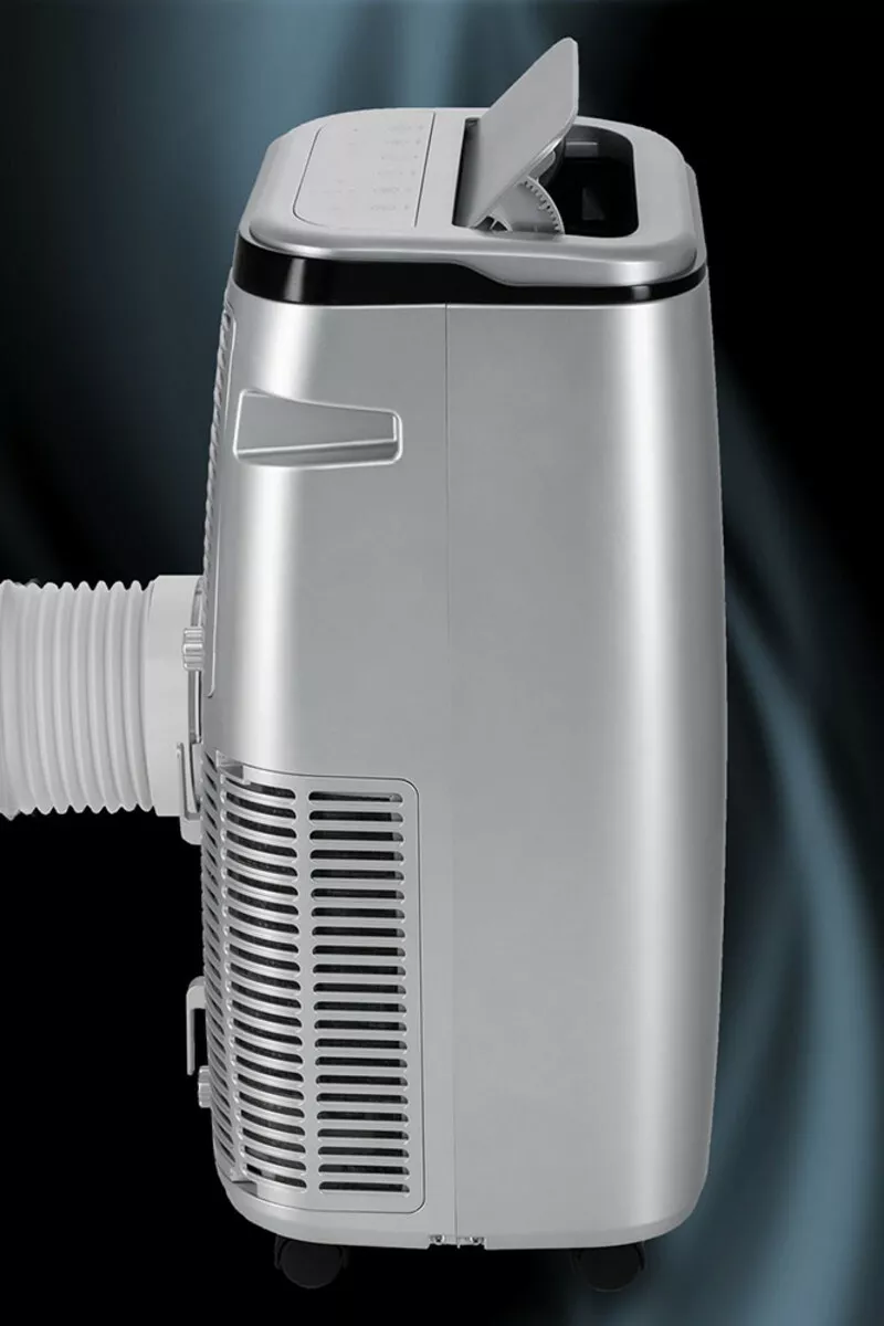 - Kompaktowy i stylowy klimatyzator jest utrzymany w srebrnej kolorystyce i idealnie wpasuje się w każde pomieszczenie mieszkalne lub biurowe,