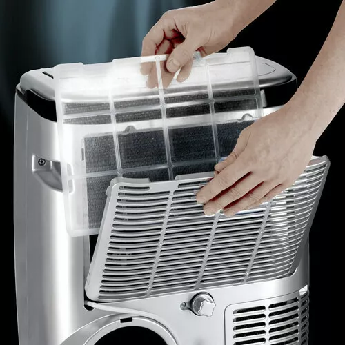 - Trójstopniowo regulowany wentylator – przy wydajności powietrza sięgającej 450 m³/h zapewnia to świeży powiew i efektywną cyrkulację powietrza w całym pomieszczeniu - nawet bez włączania kompresora chłodzącego,