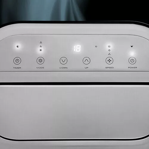 - Przejrzysty i stylowy wyświetlacz LED zapewnia intuicyjną obsługę i na pierwszy rzut oka przekazuje informacje o wszystkich ważnych parametrach ustawień. Dotyczy to zarówno funkcji zegara 24-godzinnego, 3 poziomów wentylacji, aktualnej temperatura pomieszczenia, ustawienia wartości zadanej, funkcji osuszania, jak i pracy w trybie nocnym,