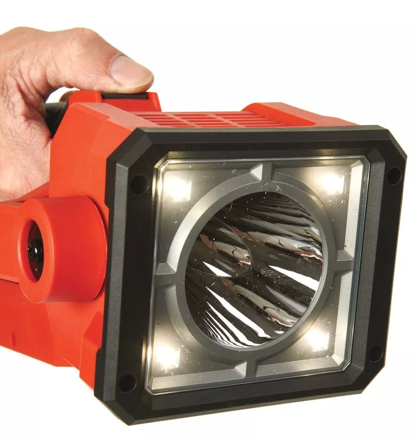 Akumulator Milwaukee M18 HB5.5 5,5 AhReflektor przenośny M18™ SLED-0 marki Milwaukee posiada cztery tryby świecenia: punktowy (1250 lm), strefowy (1200 lm), mieszany (600 lm) oraz stroboskopowy (1200 lm). Umożliwia to dostosowanie urządzenia do konkretnych potrzeb – tryb punktowy gwarantuje łatwą inspekcję miejsc trudno dostępnych, natomiast tryb strefowy umożliwia oświetlenie większego miejsca pracy.