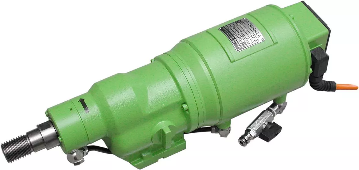 Statyw do wiertnicy Dr. Schulze Drill 45 LSolidny i wydajny silnik marki Dr. Schulze do wiertnicy 3,9 kW/400 V chłodzony wodą do wierceń do Ø 400 mm. Ochrona silnika przez wyłącznik termiczny w uzwojeniu oraz zabezpieczenie zanikowe.