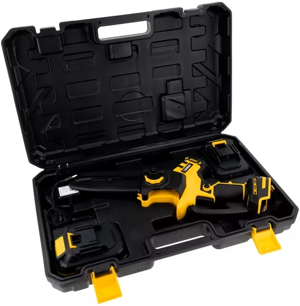 - Zestaw z walizką - ładowarka, 2 akumulatory, prowadnica oraz łańcuch 200 mm, twarda walizka,