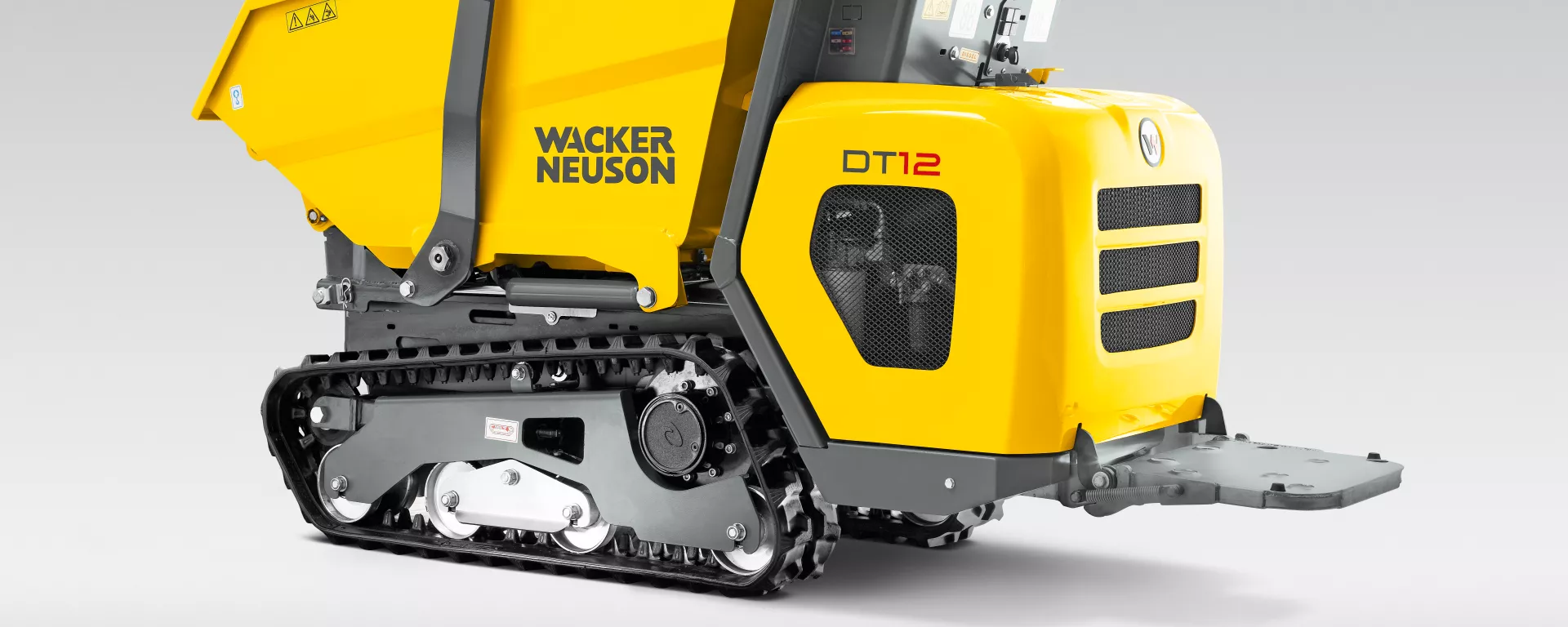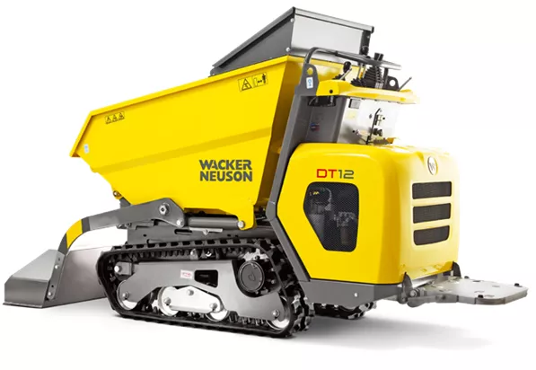 Wozidło gąsienicowe DT12 marki Wacker Neuson charakteryzuje się kompaktowymi wymiarami, które umożliwiają pracę i łatwe manewrowanie w wąskich warunkach przestrzennych. Prosta, hydrauliczna obsługa i hydrostatyczny napęd jezdny sprawiają, że jest to trwały i przyjemny partner w pracy na placu budowy. Gumowe gąsienice zapewniają optymalne rozłożenie ciężaru i niewielki nacisk na podłoże mimo dużego obciążenia użytkowego.