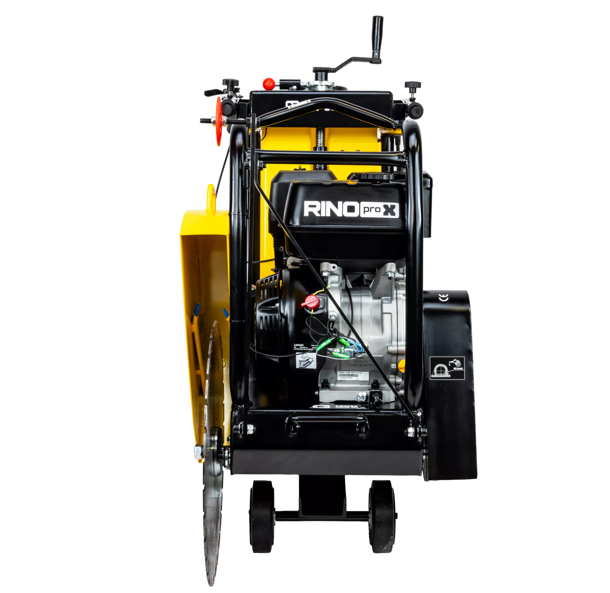 RINO XCUT-500P została zaprojektowana z myślą o maksymalnym komforcie użytkownika. Duże kółka, solidna rama i regulowany uchwyt ułatwiają prowadzenie maszyny po różnych nawierzchniach. Dzięki temu praca jest stabilna, płynna i precyzyjna nawet na dużych powierzchniach.