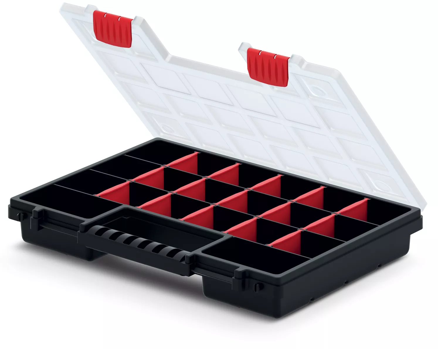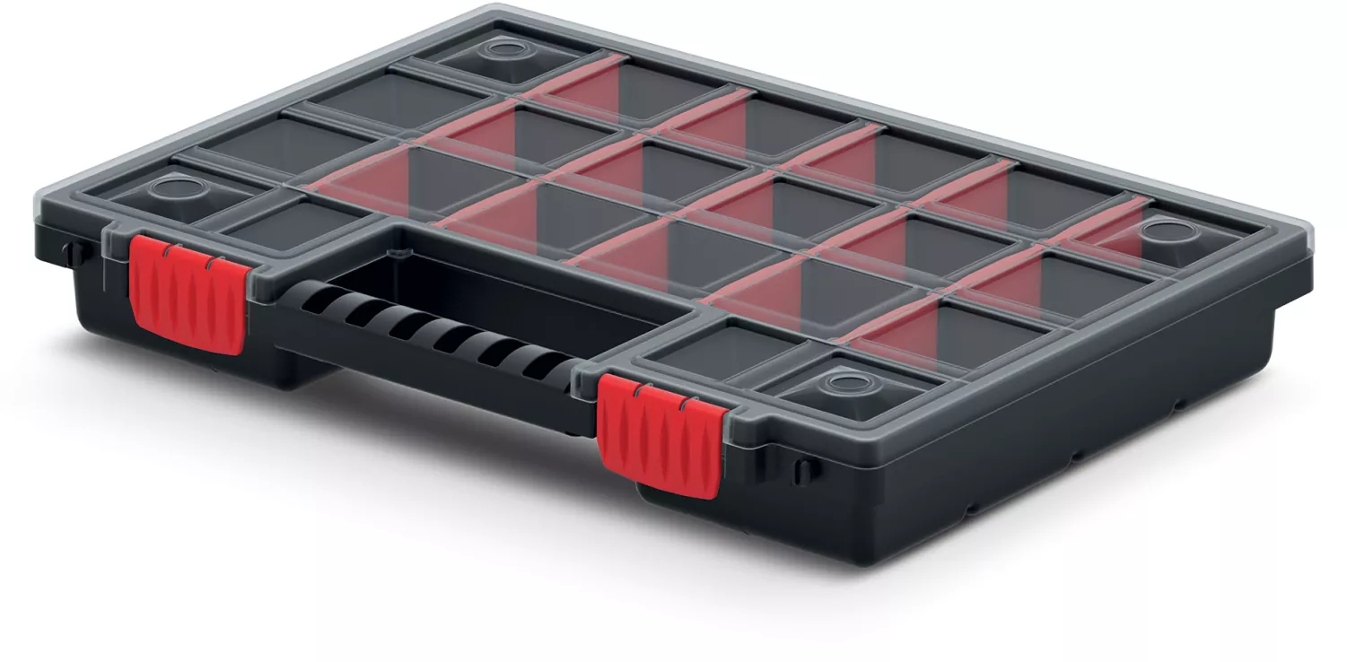Organizer narzędziowy Nors 35 KNO35255S marki Kistenberg posiada 15 wyjmowanych przegródek, wytrzymałe zapięcia i ergonomiczny uchwyt.