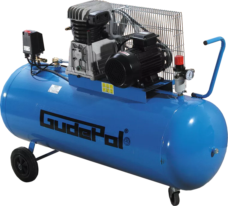 Sprężarka marki Gudepol z napędem pasowym-dwustopniowa.