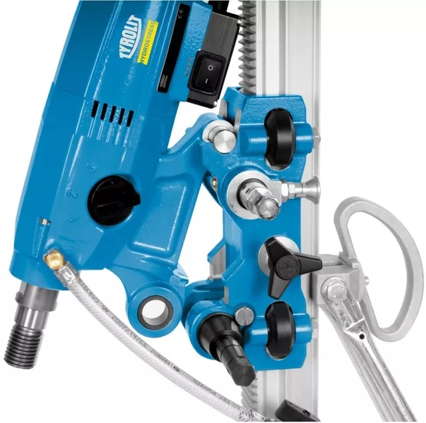 Wiertnica rdzeniowa Tyrolit DME26UWPStatyw Tyrolit DRU250 dzięki solidnemu wykonaniu oraz wytrzymałym, szerokim zębom kolumny wiertniczej oferuje imponującą stabilność oraz wydajność wiercenia. Zoptymalizowany statyw ze stabilną prowadnicą wałka gwarantuje precyzyjne wiercenie. Ponadto wskaźnik środka, wskaźnik kąta oraz skrzynia 2-biegowa posuwu zwiększają komfort użytkowania i pozwalają skrócić czas pracy. Kompaktowa, lekka konstrukcja gwarantuje łatwy transport oraz demontaż i montaż.