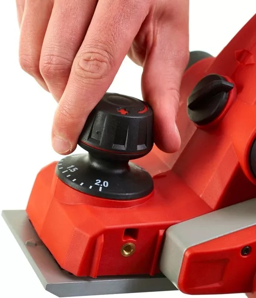 - Istnieje możliwość regulacji głębokości strugania od 0 do 2 mm z 24 blokowanymi pozycjami. Daje to możliwość użytkownikowi na dokładne dopasowanie ilość materiału usuwanego podczas pracy,