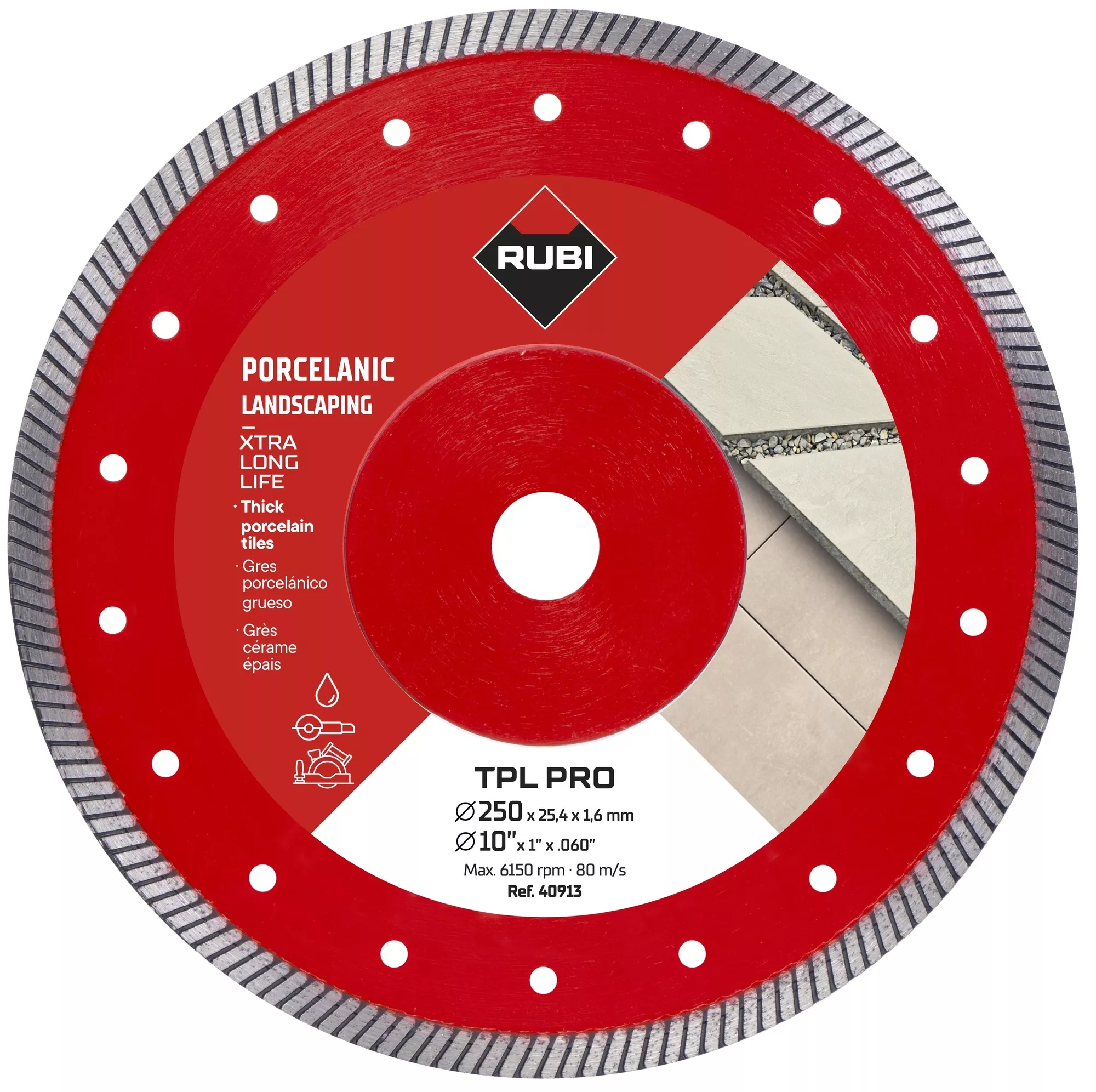 - Obrzeże typu TURBO zapewnia wysoką szybkość cięcia i dobrą jakość wykończenia,