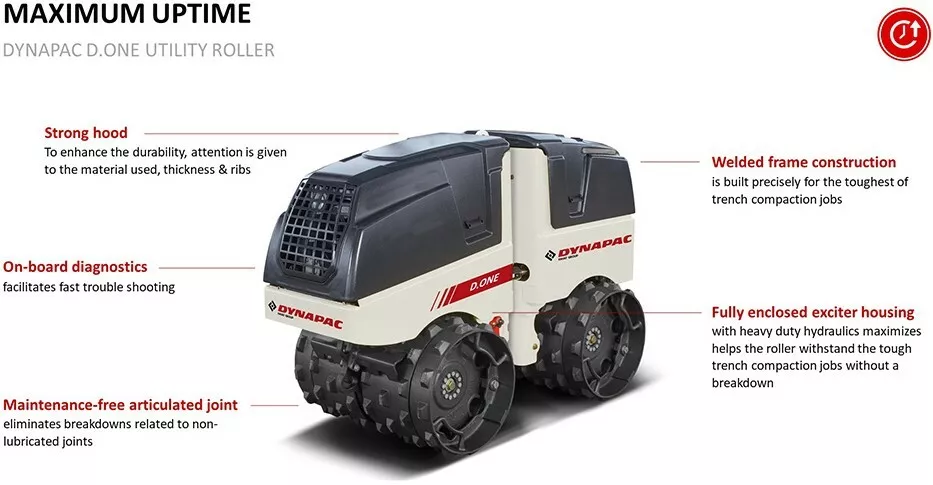 - Całkowicie zamknięta obudowa walca maksymalizuje odporność na trudne warunki zagęszczania wykopów i zapewnia pracę bez awarii.