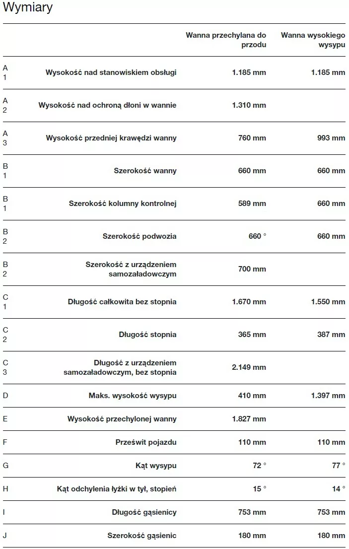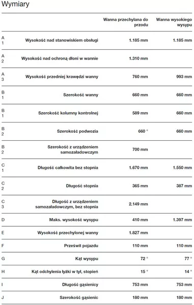 - Urządzenie samozaładowcze – samodzielny załadunek bez konieczności użycia innej maszyny zapewnia wysoką wydajność na każdym placu budowy oraz oszczędność pieniędzy i czasu.