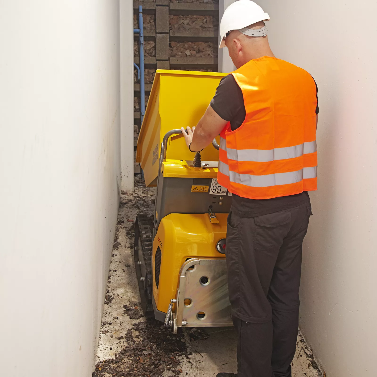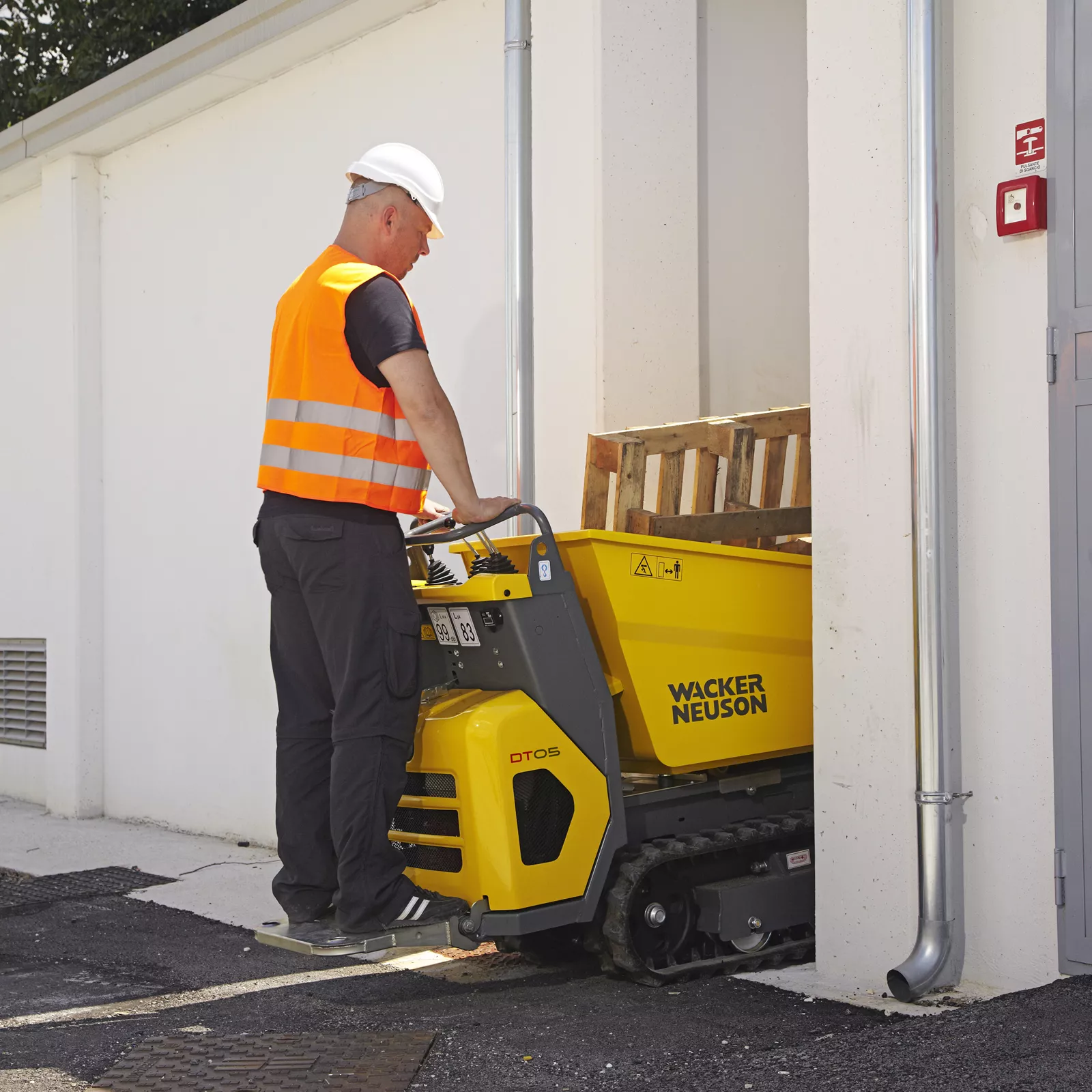 Wozidło gąsienicowe DT05 marki Wacker Neuson sprawdzi się wszędzie tam, gdzie jest bardzo wąsko i liczy się zwrotność. Charakteryzuje się niewielkim gabarytem, który umożliwia bezproblemowe przejazdy przez drzwi o normalnej szerokości 80 cm. Dzięki intuicyjnym funkcjom, wozidło gwarantuje niskie koszty serwisowe i eksploatacyjne.